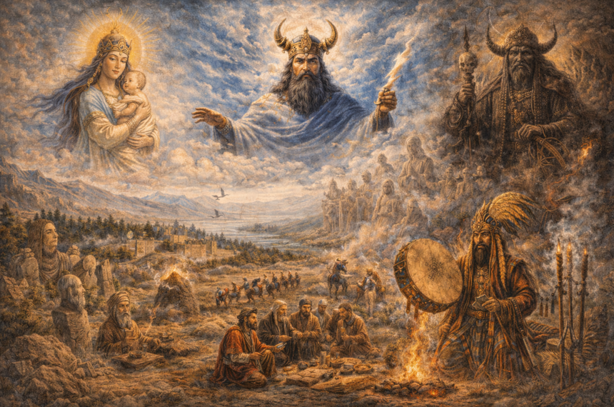 Türklerin en eski inanç sistemi, doğrudan doğruya doğa, gökyüzü ve evrenin düzeni ile bağlantılı olan ve modern araştırmacıların çoğu tarafından “Gök Tanrı inancı” olarak adlandırılan kozmolojik bir dünya görüşüne dayanır. Bu inanç sisteminin merkezi...