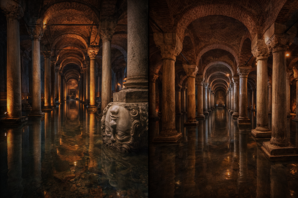 İstanbul, sadece üstünde yürüdüğümüz tarih kokan taşlarla değil, yerin altında sakladığı gizemli yapılarla da büyüleyici bir şehir. Bu yapılar arasında özellikle Yerebatan Sarnıcı ve Binbirdirek Sarnıcı, Bizans dönemi su mühendisliğinin ve mimarisinin en çarpıcı örnekleri olarak öne çıkar. Her iki sarnıç da şehre su sağlamak amacıyla inşa edilmiş olmasına rağmen mimari tarzları, büyüklükleri ve atmosferleriyle farklı deneyimler sunar.