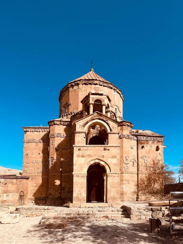 Kiliseyi benzersiz kılan en önemli özellik, dış cephelerinde yer alan kabartma süslemelerdir. Bu kabartmalar yalnızca dini figürleri değil, aynı zamanda dönemin sosyal, kültürel ve kraliyet yaşamına dair sahneleri de betimler. Bu yönüyle yapı hem bir ibadethane hem de taş üzerine işlenmiş bir tarih anlatısı gibidir. Kabartmalarda Eski Ahit (Tevrat) ve İncil’den sahneler görülür: Adem ile Havva’nın cennetten kovuluşu, Nuh’un Gemisi, Yunus’un balık tarafından yutuluşu, Davut ve Golyat sahnesi gibi hikâyeler işlenmiştir. Bunların yanında av sahneleri, hayvan mücadeleleri, aslan, geyik, kuş, ejder ve mitolojik yaratıklar da yer alır. Bu figürlerin arasında Kral Gagik’in Tanrı’ya sunu yaparken betimlendiği kabartma özellikle dikkat çekicidir; hükümdar Tanrı’nın eline doğru bir kilise maketi uzatır. Bu sahne, hem adanmışlık hem de iktidar simgesidir.